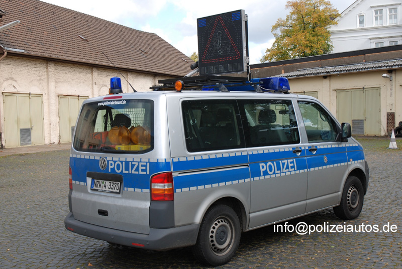 Funkstreifenwagen der Autobahnpolizei mit LED-Wechselverkehrszeichenanlage.