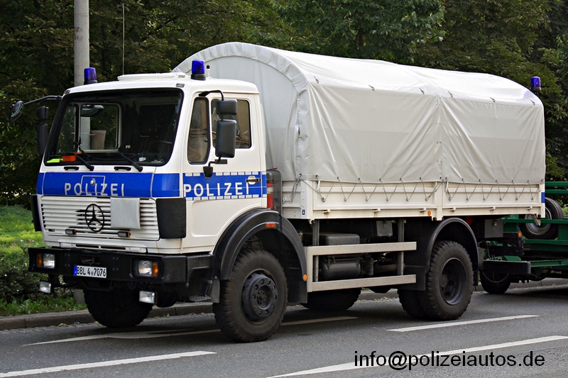 Lastkraftwagen (LKW) der Bereitschaftspolizei, u. a. als Zugfahrzeug für Anhänger mit Absperrgittern. Foto: Maikel Klotz