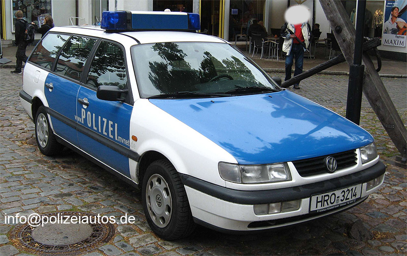 Funkstreifenwagen in Rostock-Warnemünde im klassischen Design, jedoch neu mit blauen Folien beklebt.