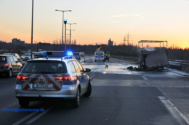 Ausgebrannter Klein-Lkw auf der Stadtautobahn.