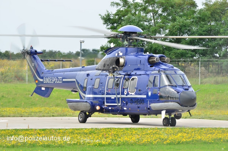 | Beschreibung: | Maschine in blauer Farbgebung mit BUNDESPOLIZEI-Beschriftung der Fliegerstaffel Fuhlendorf (Nord) mit Seeausstattung (Schwimmer, Winch und Kamera). Aufgenommen am 21.08.2011 beim Zwischenstopp in Blumberg nach der Rückverlegung vom Brandenburger Tor (60 Jahre BPol). Fotos: Daniel Bujack, www.helifotos.de |