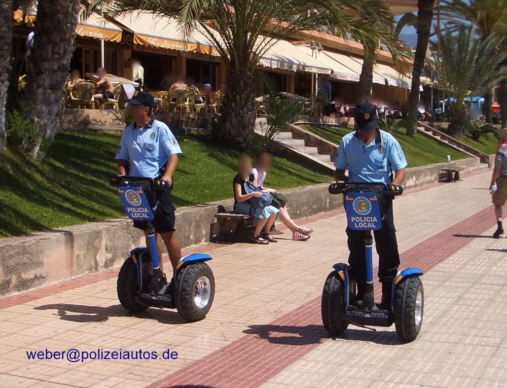 Segway-Doppelstreife der Policia Local, auf einer Strandpromenade, auf Teneriffa.
