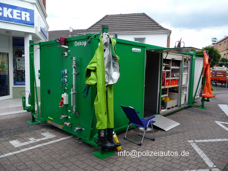 | Beschreibung: | Schmitz Dekontaminationscontainer in Arbeitsstellung. Der Container wird mittels hydraulischer Stützen vom Trägerfahrzeug (Ackermann Anhänger) abgeladen. Fotos: Alex Kirchhofer |