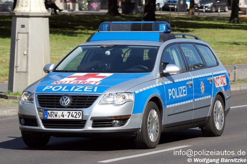 | Beschreibung: | Funkstreifenwagen VW Passat als Notarzteinsatzfahrzeug während eines Unterstützungseinsatzes in Berlin (Foto: Wolfgang Barnitzke). |