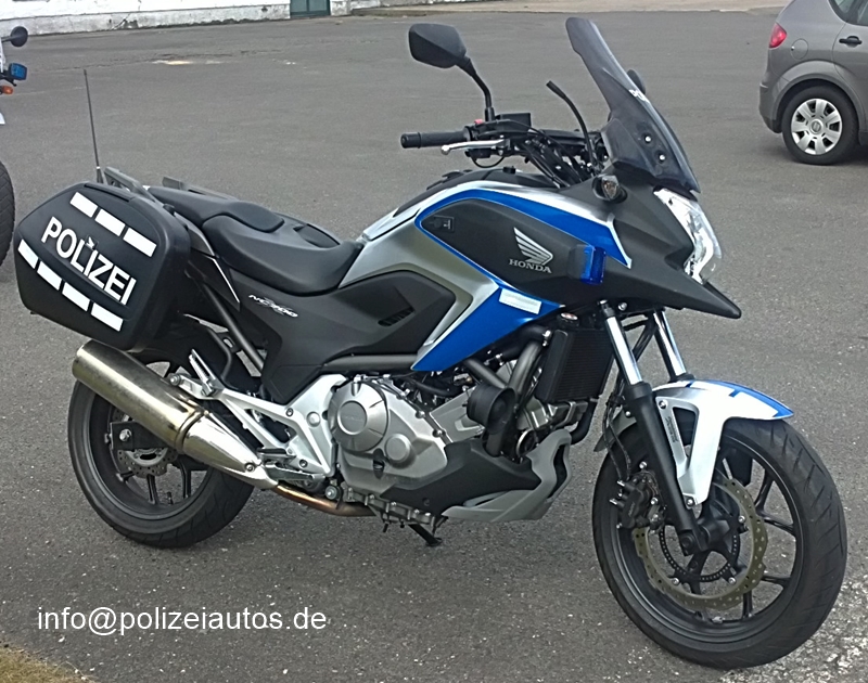 | Beschreibung: | Das Land Mecklenburg-Vorpommern hat vier dieser Motorräder gekauft. Eingekauft als „normale Zivilmaschinen“ wurden sie von der Firma Kaczmarek und Wilk in Schwerin zu Polizeikrädern um-bzw. ausgerüstet. Technische Daten Flüssigkeitsgekühlter Viertakt-Zweizylindermotor mit acht Ventilen und 670 cm³ Hubraum 35 KW (48 PS) bei 6.250 U/min Normalbenzin ABS Heizgriffe Staufach vor Fahrer Mehrscheibenkupplung im Ölbad Sechsgang-Schaltgetriebe ABS Sitzhöhe bei Leergewicht von 830 mm Tankvolumen 14,1 l 2. Batterie sowie Batterieladegerät im Staufach vor dem Fahrer Sondersignalanlage: 2 Frontblitzer, 1 Heckblitzer (oberhalb d.Rückleuchte) Digitalfunk (Motoradbedienteil von Motorola). Die komplette Funktechnik ist in beiden Seitenkoffen verbaut, womit deren Stauraum fast komplett aufgebraucht ist. Ein Bluetoothteil für die Verbindung zum Helm lässt der Funk vermissen, sodass wieder die alte Kabelverbindung herhalten muss. Abgesehen vom Preisvorteil, stellt nur die höhere Laufruhe auf Grund der 2 Zylinder einen Vorteil zur 1 Zylinder F650 GS von BMW dar. Der im Gegensatz zur Serienversion höhere Windschild bietet nur geringen Schutz im Vergleich zur BMW F 650GS mit Wunderlich Windschild. Fotos und Infos: Andreas Hoffmann |