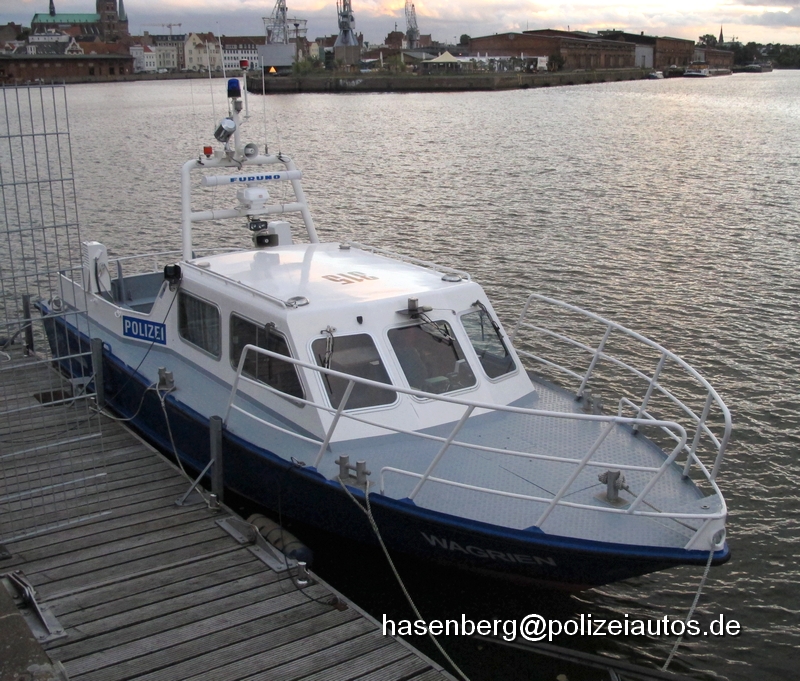 | Beschreibung: | Polizeiboot der Wasserschutzpolizei Lübeck. Im Einsatz als Streifenboot im Bereich des Hafen und auf der Trave. 1990 wurde dieses Boot auf der KuFra Werft in Lübeck mit folgenden technischen Daten gebaut. Länge: 11,00m Breite: 3,60m Verdrängung: 7,5t Hauptmotoren: 2x 200 kw bei 2600 U/Min Hersteller: MTU 8V 133 Antrieb: Propeller Höchstgeschwindigkeit: 16 Knoten Besatzung: 2 Personen Schiffsrumpf: Aluminium Aufbauten: Aluminium Technische Informationen: Homepage der Polizei Schleswig-Holstein |
