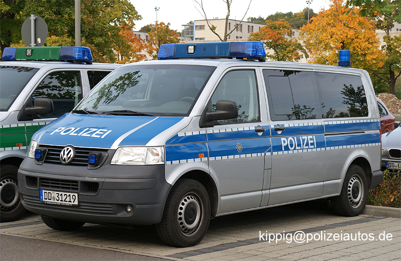 Fahrzeug der Polizei Sachsen, die Folienbeklebung wurde nachträglich von grün in blau geändert