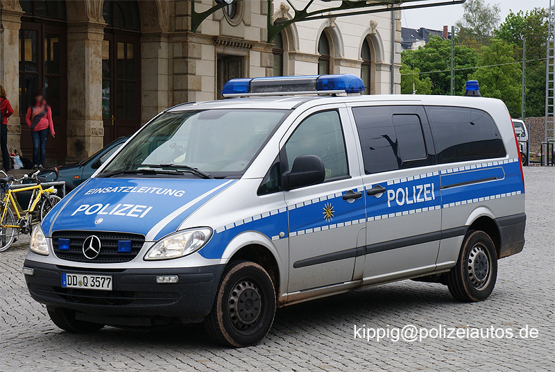 Fahrzeug der Polizei in Chemnitz mit zusätzlichen Schriftzügen 'Einsatzleitung' an Front und Heck