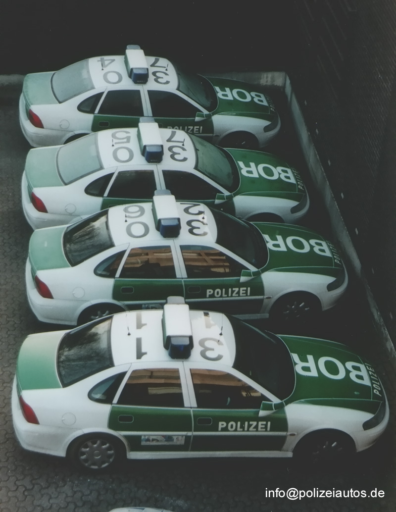 Es ist schon etwas her: 4 Funkstreifenwagen der Polizei Bocholt mit auffälliger Fliegersichtkennung.