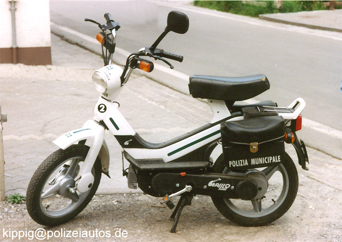 Mofa der Stadtpolizei der Comune di Livigno, Region Lombardei (hier Ende der 1990er Jahre noch mit der alten Beschriftung)