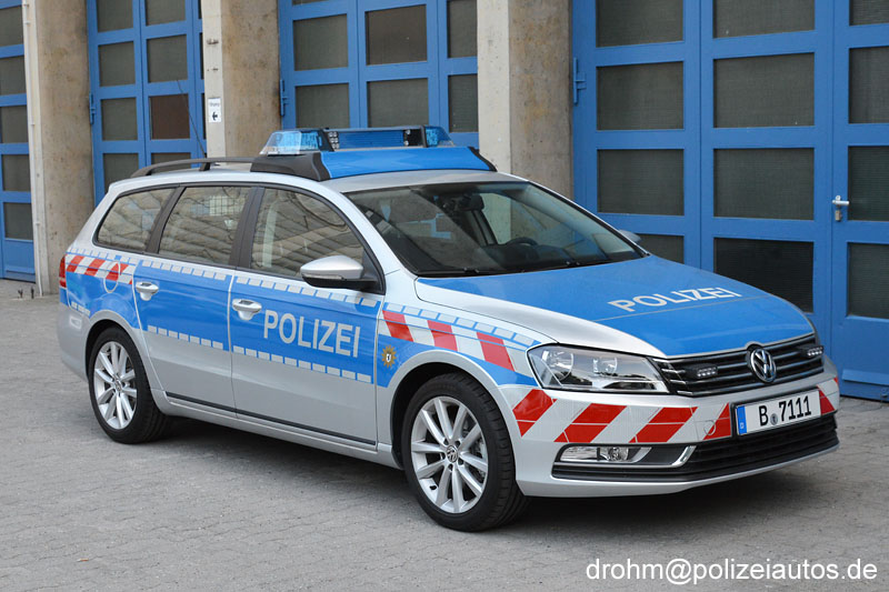 | Beschreibung: | Vier Einsatzwagen Autobahn VW Passat Variant TDI erhielt der Autobahndauerdienst der Berliner Polizei 2013. Die EWA BAB sind mit umfangreichen Sicherungsmitteln, einer Verkehrsüberwachungsanlage ProViDa und wie alle EWA BAB mit einer Anhängerkupplung zum Herunterziehen liegengebliebener Fahrzeuge ausgestattet. Im Gegensatz zum Vorgängermodell haben sie eine höhere Motorleistung und eine Pintsch-Bamag Zirkon mit Umfeldbeleuchtung. |