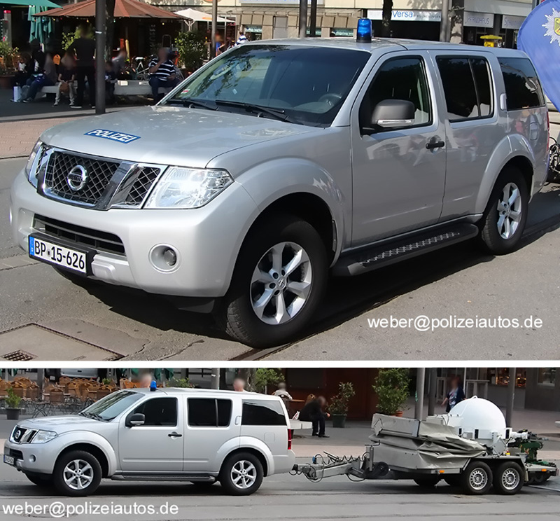| Beschreibung: | Einsatzfahrzeug der Bundespolizei, hier als Zugfahrzeug dieses Anhängers der Entschärfer. Mittels Magnet-Blaulicht und -schildern ist es als Polizeifahreug gekennzeichnet. |