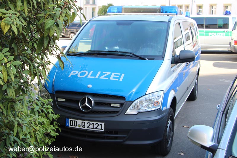 Funkstreifenwagen mit ganzflächiger blauer Motorhaube; Herbst 2013.