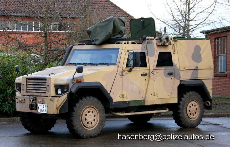 An allen vier Fahrzeugseiten wurde die internationale Bezeichnung "MP" für Military Police temporär angebracht, die sich auf den vorderen Türen und der unteren Kante der Motorhaube noch schehmenhaft abzeichnet. Das Fahrzeug verfügt über keine Sondersignalanlage. Hersteller ist die Schweizer Firma General Dynamics European Land Systems-Mowag |