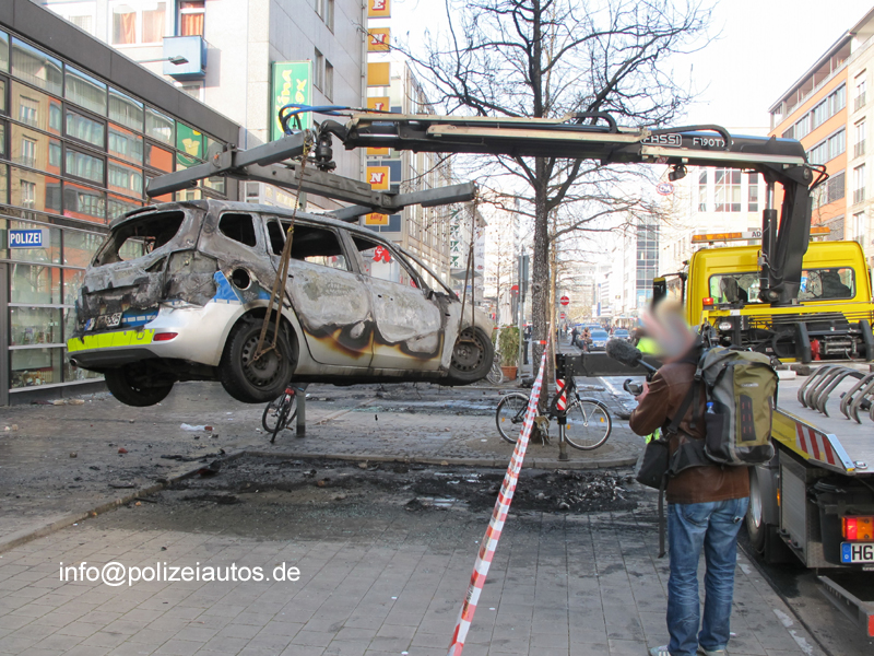 | Beschreibung: | Die Aufnahme stammt von den Blockupy-Protesttagen im März 2015 in Frankfurt/Main. Während der Ausschreitungen wurden leider auch mehrere Funkstreifenwagen in Brand gesteckt. Hier wird gerade ein total ausgebrannter Opel Zafira verladen. Foto: Gottung |