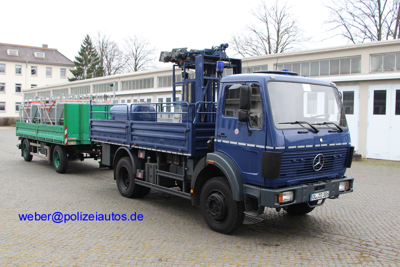 | Beschreibung: | Gespann der Oldenburger Bereitschaftspolizei: Limakw als Zugfahrzeug für den mit Hamburger Gittern beladenen Kögel-Anhänger. |