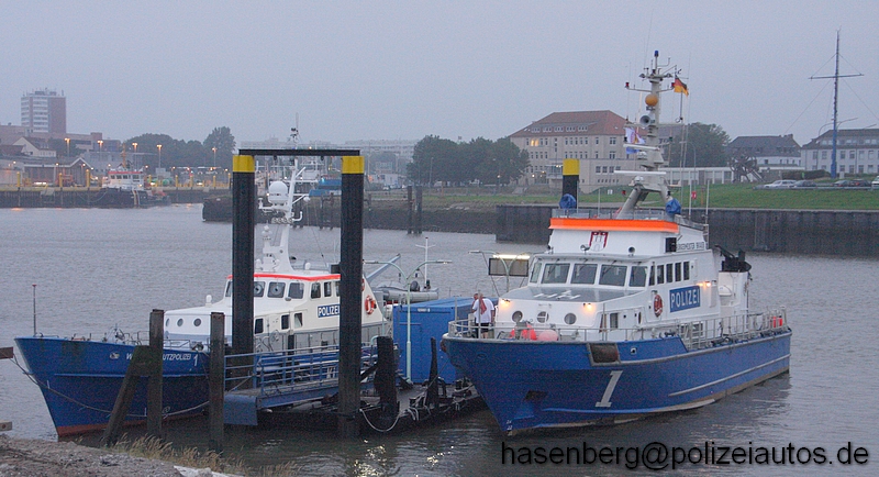 Am Abend lagen die beiden WSP Boote aus Hamburg Bürgermeister Brauer und Niedersachsen Wasserschutzpolizei 1 im Behördenhafen in Bremerhaven nebeneinander. |