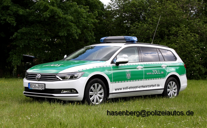 An der unteren Fahrzeugseiten wurde wieder der Internetlink zum Hinweis auf illegale Beschäftigung aufgebracht - www.zoll-stoppt-schwarzarbeit.de Diese Fahrzeuggeneration findet seit 2016 Verwendung beim Zoll. Im Kofferraum sind Einbauten zum Transport von beschlagnahmten Akten und Gegenständen verbaut worden. |