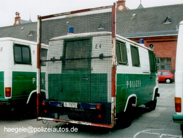 Absperrgitterkraftwagen. Wie das Fahrzeug in der Arbeitsstellung aussieht, wird am Modell im Maßstab 1:87 gezeigt.