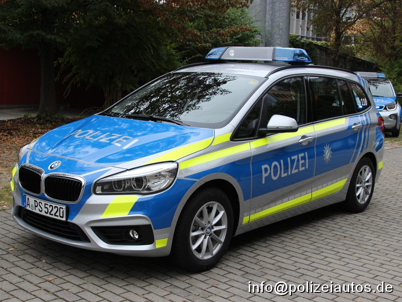 Es handelt sich bei diesem Fahrzeug um den ersten BMW 2er Grand Tourer in "blauem Design". Zusätzlich wurde hier noch eine VESBA ähnliche Beklebung zur besseren Wahrnehmung aufgebracht. Foto und Info: Helmut Kunert (www.blaulichtwelten.de) |