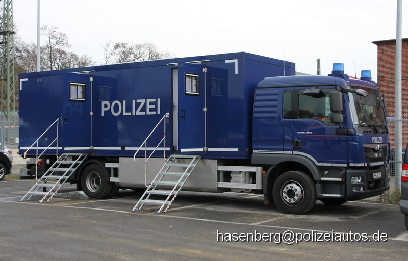 Dieser Fahrzeugtyp wurde 2016 in Dienst gestellt und ist das erste Fahrzeug einer Beschaffungsreihe. Zukünftig wird jede Abteilung der Bundespolizei ein solches Fahrzeug erhalten. Gebaut wurde das Fahrzeug bei der Fa. Empl. Technische Daten- Gesamtgewicht: 15,5t Fahrzeuglänge: 9,80m Frischwassertank: 2000l Abwassertank: 2500l Der Fahrzeugaufbau ist in drei Teilbereiche eingeteilt (Damen-, Herren- und Technikbereich). Die für den Betrieb des Fahrzeuges benötigte Energie kann über eine auf dem Aufbaudach installierte Photovoltaikanlage, sowie einem separaten Stromerzeuger im Technikbereich erzeugt werden. Baugleiche Fahrzeuge wurden schon an die Polizei Niedersachsen geliefert. |