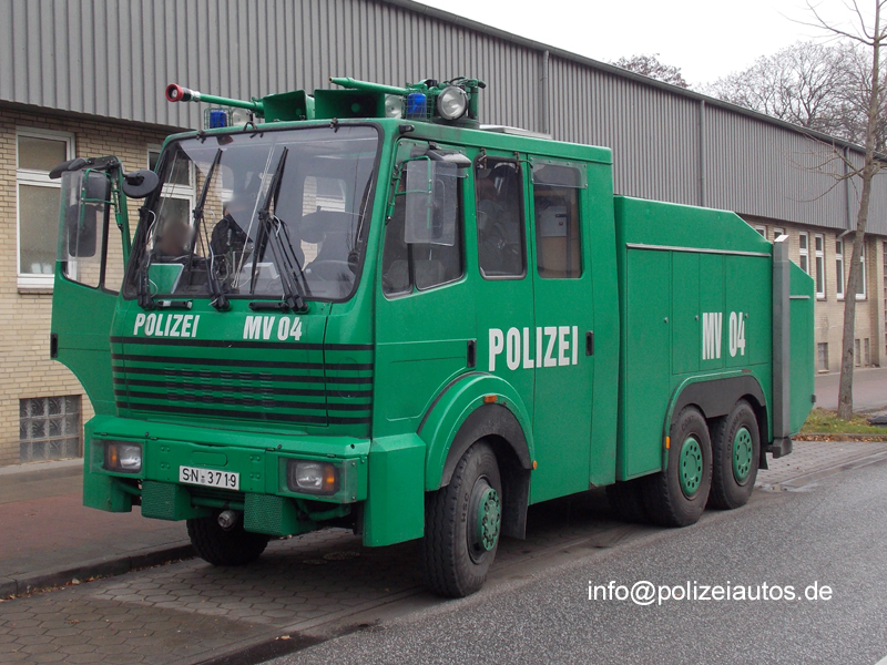 | Beschreibung: | Wasserwerfer 9000 der Bereitschaftspolizei Mecklenburg-Vorpommern. Der schon seit ca. 25 Jahren im Dienst befindliche Wawe erhielt u.a. die spezifische Länderkennung MV 04, POLIZEI-Schriftzüge, sowie ein verbessertes rechtes Strahlrohr. Foto: Jens Ode |