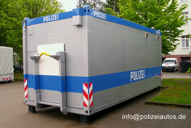 | Beschreibung: | Mobile Wache / Befehlsstelle auf Basis eines Abrollcontainers. Dieser Austauschbare Ladungsträger (ATL) wurde in 2017 optisch, sowie technisch aufgearbeitet, u.a. wurden auf dem Dach vier Blaulichter montiert. Fotos und Info: I. Kröning |
