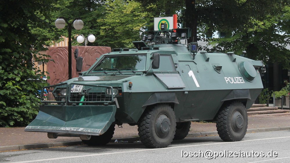 | Beschreibung: | Bundeseinheitlicher Sonderwagen 4 der Bereitschaftspolizei Hamburg. Bei dem aus dem Bestand der Bundespolizei stammenden Fahrzeug wurde der Lichtaufsatz nachträglich mit 5 LED-Scheinwerfern versehen, am Heck wurde eine Rückfahrkamera installiert. Im Gegensatz zu diesem SW 4 sind hier keine LED-Blaulichter montiert, ebenso fehlt der Hamburger Polizeistern. |