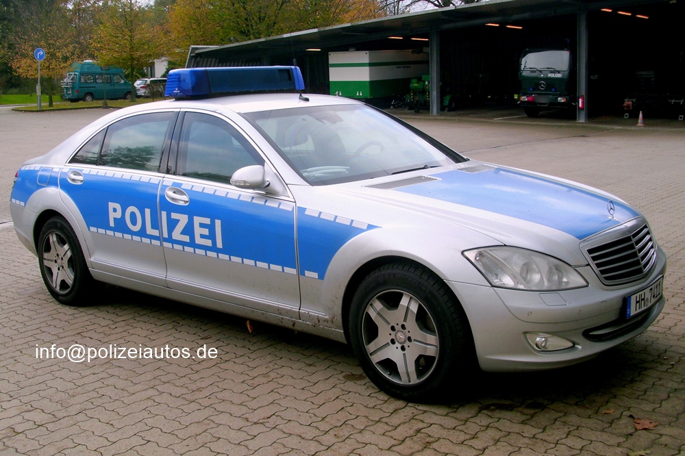 Sonderfahrzeug der Polizei Hamburg zur Begleitung von Geld- und Werttransporten.