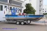 Boot 21 der Tauchergruppe der Bereitschaftspolizei Niedersachsen auf einem Trailer. |