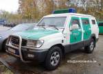 |  |   | Geländewagen der Bereitschaftspolizei in ziviler Farbgebung, aber mit Polizei-Kennzeichen. |  |