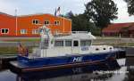 Streifenboot der hessischen Wasserschutzpolizei. Auf den Fotos liegt das Boot in fremden Gewässern, auf dem Elisabethfehnkanal (Teil des ostfriesischen Kanalnetzes) in Niedersachsen. Fotos: Jan Erik Karwacik |