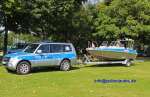Mitsubishi Pajero der hess. Wasserschutzpolizei mit dem Streifenboot Hessen 421. Ein nahezu baugleiches Boot ist HIER zu sehen. Foto: Dönges |