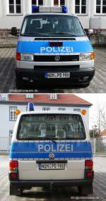 Funkstreifenwagen der Polizei Niedersachsen seit Januar 2012. Nach einer Erprobungsphase wurde die neueste Charge der nds. VW T5 GP mit der Hänsch DBS 4000 ausgerüstet. |