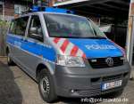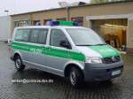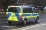 Funkstreifenwagen der Polizei Niedersachsen in der Ausführung mit Reflexstreifen. Unter den bisher in Dienst gestellten VW T5 der Länderpolizeien, die einzige Variante mit einer einteiligen Folienbeklebung auf der Motorhaube. |