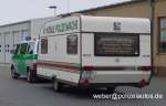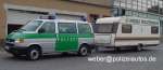 Funkstreifenwagen mit einem zur Mobilen Polizeiwache umgebauten Wohnwagenanhänger. |