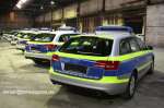 Beim Autohändler zur Übergabe an die Polizei Niedersachsen aufgereihte Funkstreifenwagen der Marke Audi A6 Avant. |