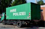 Wechselladerfahrzeug der Polizei Niedersachsen mit austauschbarem Ladungsträger (ATL) Plane/Spriegel. |