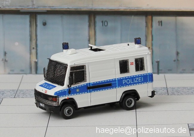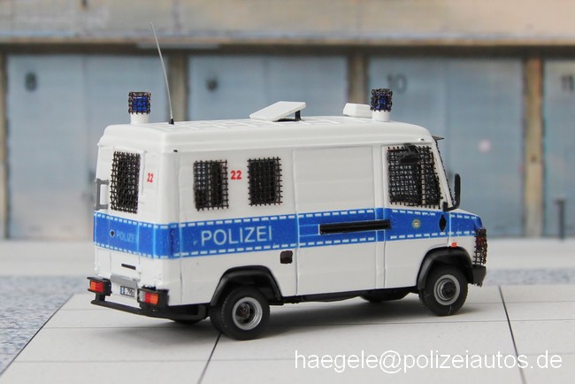 Die hinteren Fenster, die Hecktür und Dachluke mussten eingearbeitet und das Modell umlackiert werden. Zuletzt wurden Fenster und Kühlergrill vergittert sowie diverse Details montiert (Haegele).
