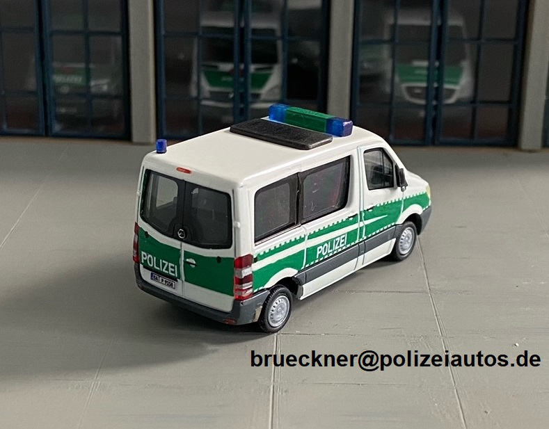 Bereitschaftspolizei Bayern 1:87 Mercedes-Benz Sprinter ’06 HGrukw Grundmodell: Eigenbau Maßstab:1:87 Einsatzgebiet des Vorbilds: Gruppenkraftwagen und Busse Bayern2623 Aufrufe seit 11.01.2022 Eigenbau aus einem längeren Herpa-Modell. Nach dem Bemalen wurden Reflexstreifen und Beschriftung als Decals angebracht. Umbau: Brückner Zur Liste --- Serien- oder Sondermodelle --- Maßstab 1:43- Polizei Brandenburg 1:43- Bundespolizei (ehem. BGS ) 1:43- Polizei Hamburg 1:43- Polizei Niedersachsen 1:43- Polizei Nordrhein-Westfalen 1:43- Polizei Bayern 1:43- Polizei Berlin 1:43- Volkspolizei 1:43 Maßstab 1:87- Bundespolizei (1:87)- Feldjäger 1:87- Polizei Bremen 1:87- Polizei Hamburg 1:87- Bundesgrenzschutz (1:87)- Polizei Mecklenburg-Vorpommern 1:87...- Ordnungsamt (1:87)- Polizei Baden-Württemberg 1:87- Polizei Bayern 1:87- - Bereitschaftspolizei Bayern 1:87- - Kleintransporter (seriennah), Bayer...- - Pkw (seriennah), Bayern 1:87- Polizei Berlin 1:87- - Eigenbauten, Berlin 1:87- - Kleintransporter (seriennah), Berli...- - LKW (seriennah), Berlin 1:87- - PKW (seriennah), Berlin 1:87- Polizei Brandenburg 1:87- Polizei Hessen 1:87- Polizei Niedersachsen 1:87- Polizei Nordrhein-Westfalen 1:87- Erprobungsfahrzeuge 1:87- Polizei Rheinland-Pfalz 1:87- Polizei Saarland 1:87- Polizei Sachsen 1:87- Polizei Schleswig Holstein 1:87- Polizei Thüringen 1:87- Polizei Sachsen-Anhalt 1:87- Volkspolizei 1:87- Modelle im Einsatz (Dioramen) 1:87- Zoll 1:87 Maßstab 1:160 Sonstige Maßstäbe