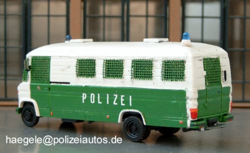 Kleintransporter (seriennah), Berlin 1:87 MB mittlerer Mannschaftskraftwagen Grundmodell: (Artikel-Nr.: Herpa) Maßstab:0 Einsatzgebiet des Vorbilds: Gruppen- und Mannschaftskraftwagen Berlin8513 Aufrufe seit 14.10.2002 Der Kühlergrill wurde durch ein Teil von Wiking ersetzt, zudem wurden Fenster an den Seiten und am Heck eingearbeitet (Haegele). Zur Liste --- Serien- oder Sondermodelle --- Maßstab 1:43- Polizei Brandenburg 1:43- Bundespolizei (ehem. BGS ) 1:43- Polizei Hamburg 1:43- Polizei Niedersachsen 1:43- Polizei Nordrhein-Westfalen 1:43- Polizei Bayern 1:43- Polizei Berlin 1:43- Volkspolizei 1:43 Maßstab 1:87- Bundespolizei (1:87)- Feldjäger 1:87- Polizei Bremen 1:87- Polizei Hamburg 1:87- Bundesgrenzschutz (1:87)- Polizei Mecklenburg-Vorpommern 1:87...- Ordnungsamt (1:87)- Polizei Baden-Württemberg 1:87- Polizei Bayern 1:87- - Bereitschaftspolizei Bayern 1:87- - Kleintransporter (seriennah), Bayer...- - Pkw (seriennah), Bayern 1:87- Polizei Berlin 1:87- - Eigenbauten, Berlin 1:87- - Kleintransporter (seriennah), Berli...- - LKW (seriennah), Berlin 1:87- - PKW (seriennah), Berlin 1:87- Polizei Brandenburg 1:87- Polizei Hessen 1:87- Polizei Niedersachsen 1:87- Polizei Nordrhein-Westfalen 1:87- Erprobungsfahrzeuge 1:87- Polizei Rheinland-Pfalz 1:87- Polizei Saarland 1:87- Polizei Sachsen 1:87- Polizei Schleswig Holstein 1:87- Polizei Thüringen 1:87- Polizei Sachsen-Anhalt 1:87- Volkspolizei 1:87- Modelle im Einsatz (Dioramen) 1:87- Zoll 1:87 Maßstab 1:160 Sonstige Maßstäbe