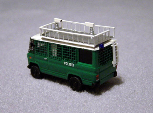Kleintransporter (seriennah), Berlin 1:87 Mercedes-Benz 309 D Grundmodell: (Artikel-Nr.: ibertren) Maßstab:0 Einsatzgebiet des Vorbilds: Führungsfahrzeuge Berlin8428 Aufrufe seit 27.01.2003 Fernsehübertragungskw der Berliner Polizei. Bau und Info: Drohm Zur Liste --- Serien- oder Sondermodelle --- Maßstab 1:43- Polizei Brandenburg 1:43- Bundespolizei (ehem. BGS ) 1:43- Polizei Hamburg 1:43- Polizei Niedersachsen 1:43- Polizei Nordrhein-Westfalen 1:43- Polizei Bayern 1:43- Polizei Berlin 1:43- Volkspolizei 1:43 Maßstab 1:87- Bundespolizei (1:87)- Feldjäger 1:87- Polizei Bremen 1:87- Polizei Hamburg 1:87- Bundesgrenzschutz (1:87)- Polizei Mecklenburg-Vorpommern 1:87...- Ordnungsamt (1:87)- Polizei Baden-Württemberg 1:87- Polizei Bayern 1:87- - Bereitschaftspolizei Bayern 1:87- - Kleintransporter (seriennah), Bayer...- - Pkw (seriennah), Bayern 1:87- Polizei Berlin 1:87- - Eigenbauten, Berlin 1:87- - Kleintransporter (seriennah), Berli...- - LKW (seriennah), Berlin 1:87- - PKW (seriennah), Berlin 1:87- Polizei Brandenburg 1:87- Polizei Hessen 1:87- Polizei Niedersachsen 1:87- Polizei Nordrhein-Westfalen 1:87- Erprobungsfahrzeuge 1:87- Polizei Rheinland-Pfalz 1:87- Polizei Saarland 1:87- Polizei Sachsen 1:87- Polizei Schleswig Holstein 1:87- Polizei Thüringen 1:87- Polizei Sachsen-Anhalt 1:87- Volkspolizei 1:87- Modelle im Einsatz (Dioramen) 1:87- Zoll 1:87 Maßstab 1:160 Sonstige Maßstäbe