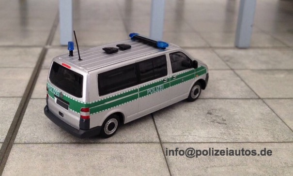 Kleintransporter (seriennah), Bayern 1:87 VW Transporter T5 GP LR GefKw Grundmodell: Rietze Maßstab:1:87 Einsatzgebiet des Vorbilds: Gefangenentransportfahrzeuge Bayern5876 Aufrufe seit 05.05.2017 Der T5 von Rietze wurde silber lackiert und mit vorbilgerechten Decals versehen. Das selbstgebaute Stielblaulicht am Heck und die Dachluken runden den Umbau ab. Umbau: Robert Augustin Zur Liste --- Serien- oder Sondermodelle --- Maßstab 1:43- Polizei Brandenburg 1:43- Bundespolizei (ehem. BGS ) 1:43- Polizei Hamburg 1:43- Polizei Niedersachsen 1:43- Polizei Nordrhein-Westfalen 1:43- Polizei Bayern 1:43- Polizei Berlin 1:43- Volkspolizei 1:43 Maßstab 1:87- Bundespolizei (1:87)- Feldjäger 1:87- Polizei Bremen 1:87- Polizei Hamburg 1:87- Bundesgrenzschutz (1:87)- Polizei Mecklenburg-Vorpommern 1:87...- Ordnungsamt (1:87)- Polizei Baden-Württemberg 1:87- Polizei Bayern 1:87- - Bereitschaftspolizei Bayern 1:87- - Kleintransporter (seriennah), Bayer...- - Pkw (seriennah), Bayern 1:87- Polizei Berlin 1:87- - Eigenbauten, Berlin 1:87- - Kleintransporter (seriennah), Berli...- - LKW (seriennah), Berlin 1:87- - PKW (seriennah), Berlin 1:87- Polizei Brandenburg 1:87- Polizei Hessen 1:87- Polizei Niedersachsen 1:87- Polizei Nordrhein-Westfalen 1:87- Erprobungsfahrzeuge 1:87- Polizei Rheinland-Pfalz 1:87- Polizei Saarland 1:87- Polizei Sachsen 1:87- Polizei Schleswig Holstein 1:87- Polizei Thüringen 1:87- Polizei Sachsen-Anhalt 1:87- Volkspolizei 1:87- Modelle im Einsatz (Dioramen) 1:87- Zoll 1:87 Maßstab 1:160 Sonstige Maßstäbe