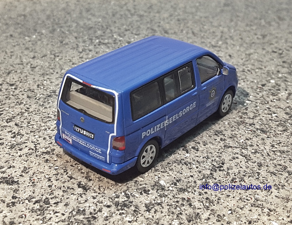 Fahrzeug der Polizeiseelsorge der Polizei Nordrhein-Westfalen. Das blaue Serienmodell aus dem Hause Wiking wurde mit Decals von ds-Design komplettiert. (Umbau: K. Domnick)
