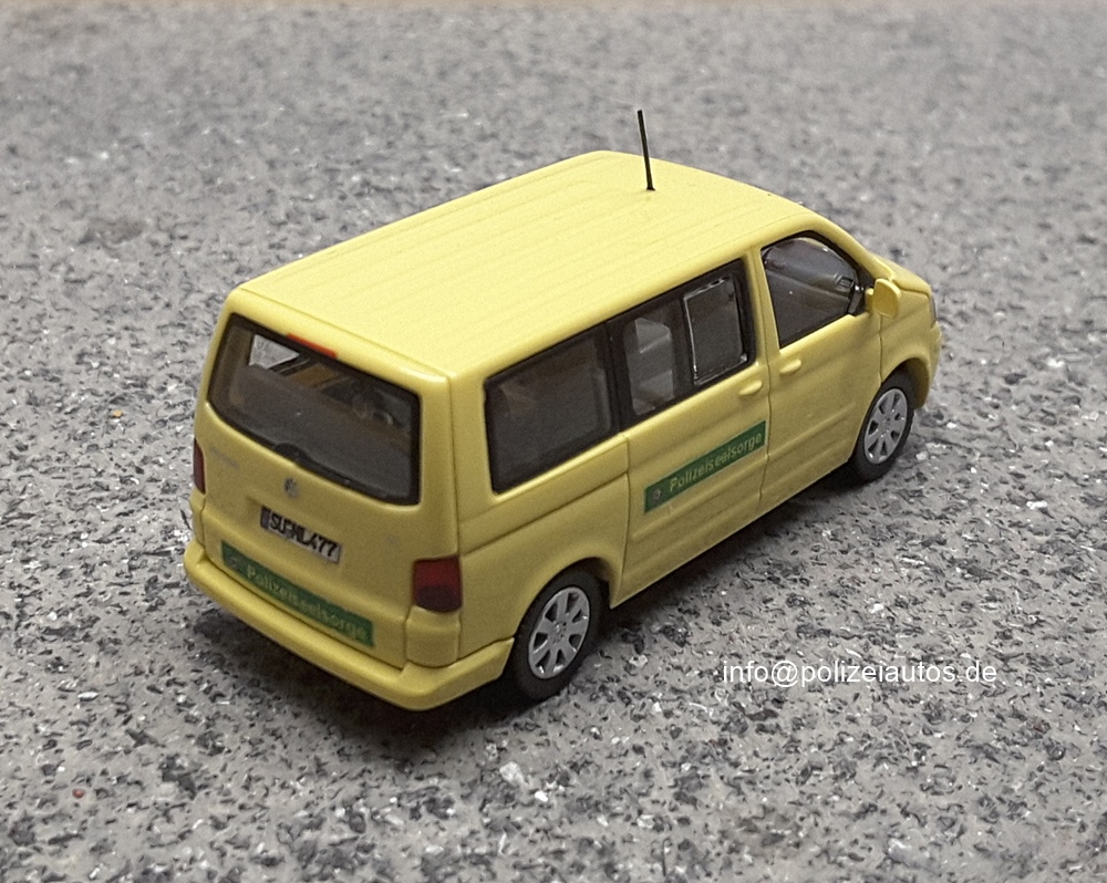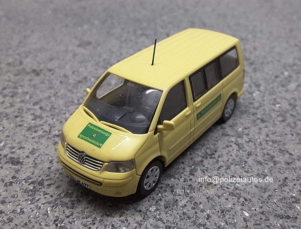 Fahrzeug der Polizeiseelsorge der Polizei Nordrhein-Westfalen. Das gelbe Serienmodell aus dem Hause Wiking wurde mit einer Antenne, originalen Kennzeichen und selbst erstellten Decals der Polizeiseelsorge komplettiert.