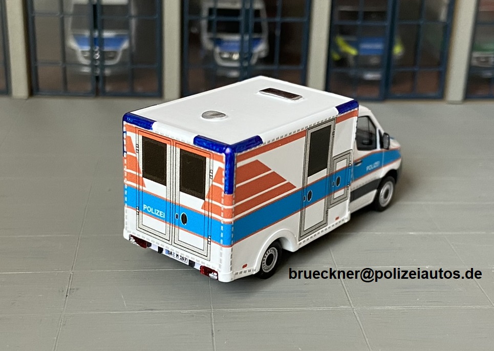 Fahrerhaus und Fahrgestell stammen von einem Herpa MiniKit. Der Kofferaufbau und die Decals stammen von einem Kleinserienhersteller (Danke an dieser Stelle an Dennis Losch für den Tip!) Dachluken, Frontblitzer und Rückleuchtenleiste sind Eigenbauten. Umbau: Brückner