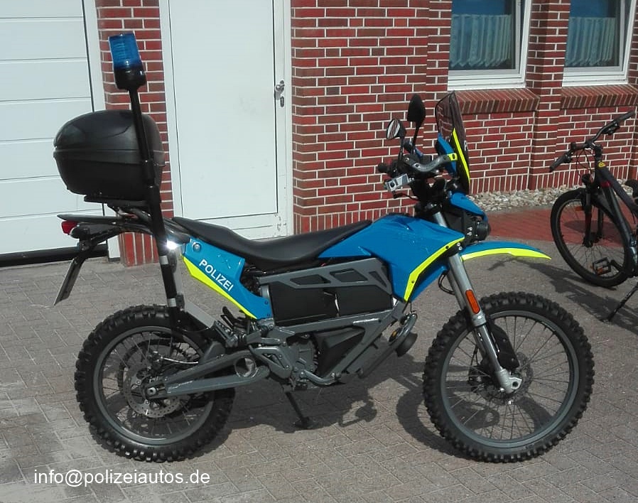 | Beschreibung: | Elektromotorrad der Polizei Niedersachsen. Dieses erste Elektro-Polizeimotorrad im Einsatz- und Streifendienst in Deutschland wurde am 05.Mai 2017 an Polizei Nds. übergeben und auf der Insel Borkum stationiert. Die Lackierung und Elektrik wurde gegen den erhöhten Salzgehalt in der Luft besonders geschützt. Gegenüber dem Auslieferungszustand wurde das Fahrzeug inzwischen mit Frontblitzern und einem Blaulicht mit Horn, nachgerüstet. Fotos: M. Beckers |