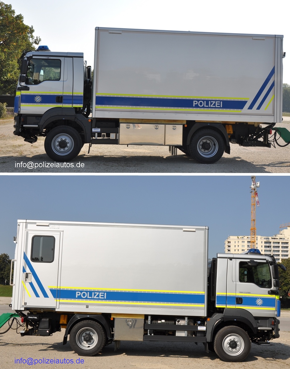 | Beschreibung: | Einsatzfahrzeug (GGKW ?) der TEE der Bereitschaftspolizei Bayern, seit September 2020. Das Fahrzeug ist mit einer Ladebordwand der Fa. Dautel ausgerüstet, der Aufbau kommt von der Fa. Albert in Wendelstein. Fotos: Helmut Kunert (www.blaulichtwelten.de). |
