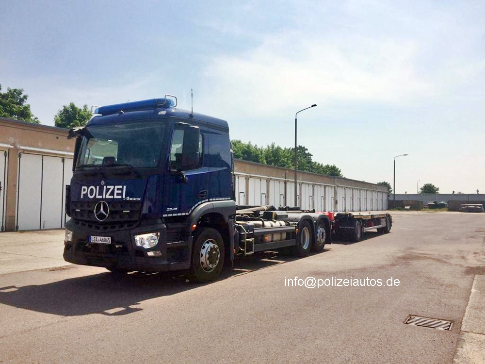 | Beschreibung: | Wechselladerfahrzeug mit Anhänger der Bereitschaftspolizei Sachsen-Anhalt. Fotos: sojus31 |