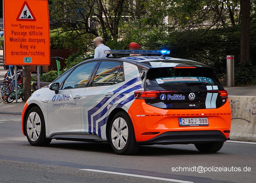 Elektrisches Einsatzfahrzeug der belgischen Polizei in der Polizeizone ‚Limburg Regio Hauptstadt‘.